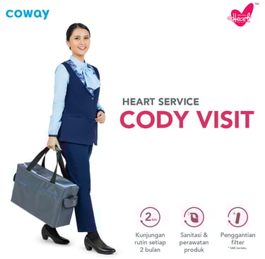 Coway Heart Service termasuk pencucian dan penggantian filter, sanitasi produk (dengan menggunakan HICare Sanitising System dan pembersihan) serta mengecek fungsi produk. Selain itu, penggantian suku cadang juga termasuk dalam service.