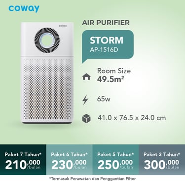 Bernafas lebih lega, hidup terasa lebih sehat. Coway membantu menjaga kualitas udara di dalam rumah, sehingga keluarga bisa menghirup udara yang bersih setiap hari - bebas debu, asap, dan alergen. Fitur unggulan Coway :